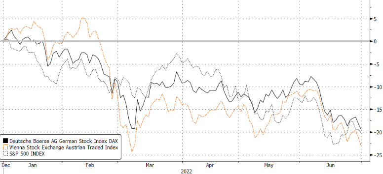 Zinserhöhungen dämpfen die gesamtwirtschaftliche Nachfrage und damit die Konjunktur, die derzeit auf beiden Seiten des Atlantiks ziemlich angeschlagen ist. Hier wie dort haben daher bereits die Wirtschaftsforschungsinstitute die Wachstumsprognosen für heuer und für das kommende Jahr zurückgenommen. Die internationalen Sanktionen und die Gegenreaktionen darauf verteuern nicht nur die Rohstoffpreise, sondern treffen direkt und über die Energieversorgung indirekt eine ganze Reihe von Produktionen, und die damit befassten Unternehmen.